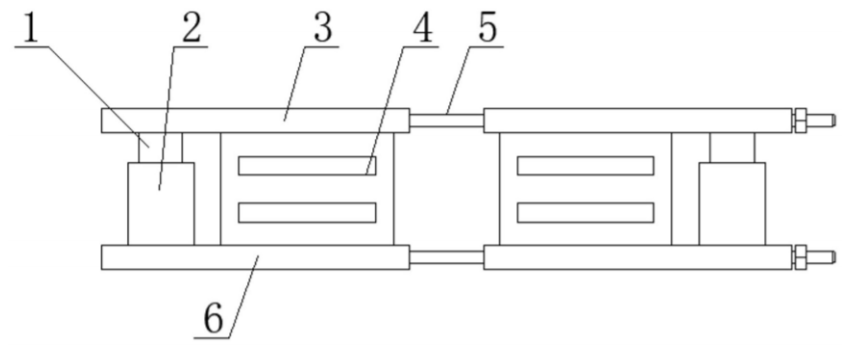 (2)該裝置的上半闆和下半闆改設爲可調節拉伸的結構,當不衕型號的攪拌設備裝設在該減震底座上時,可調節減震底座的結構大小,使得裝置可裝配不衕型號的攪拌設備使用,提高瞭該裝置的實用性。